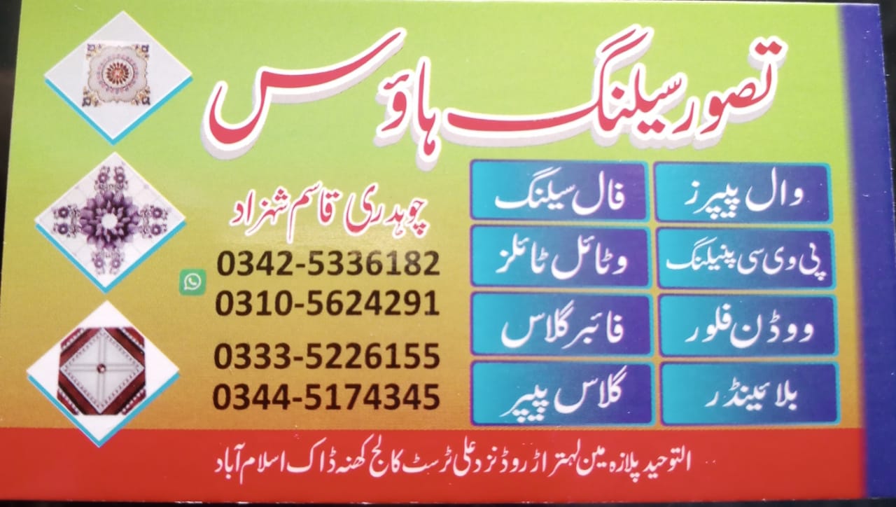 عمران پلازہ۔شاپ نبر 1.نزد عثمانیہ ریسٹورنٹ۔مری روڈ بہارپ کہو اسلام آباد